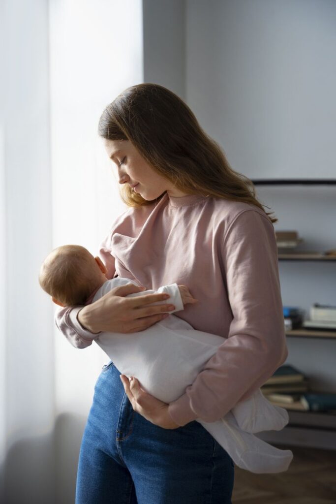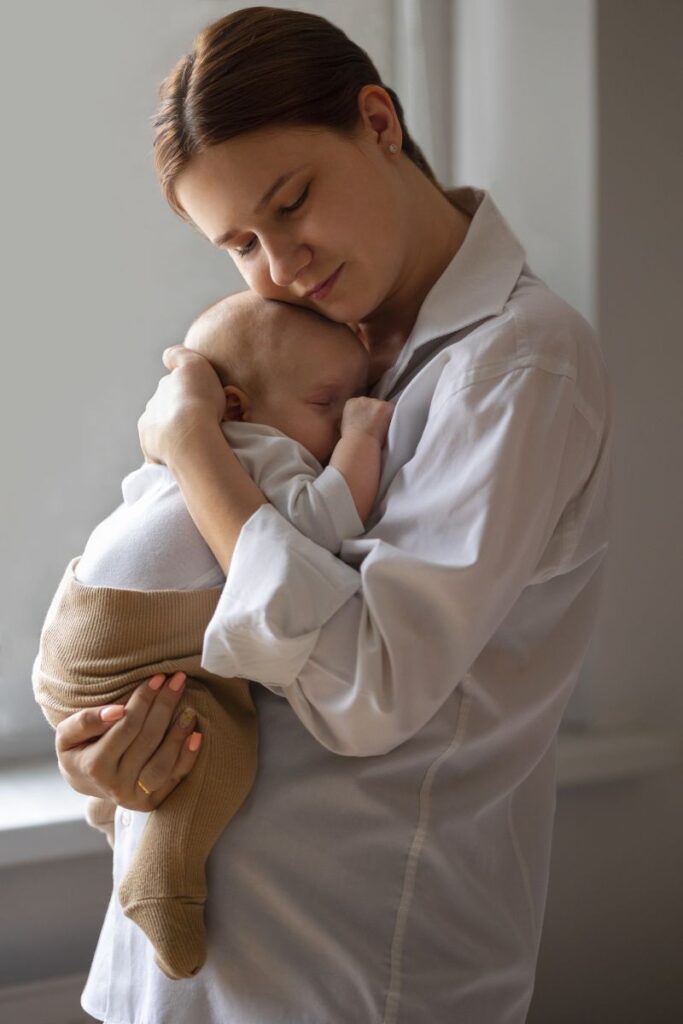 A exaustão física, a privação de sono e a instabilidade emocional no pós-parto estão associadas a maior risco de interrupção precoce do aleitamento materno [2,3]. O primeiro mês é particularmente exigente. Isto porque o bebé mama com elevada frequência, o corpo está em intensa adaptação hormonal e a recuperação do parto ainda está em curso.