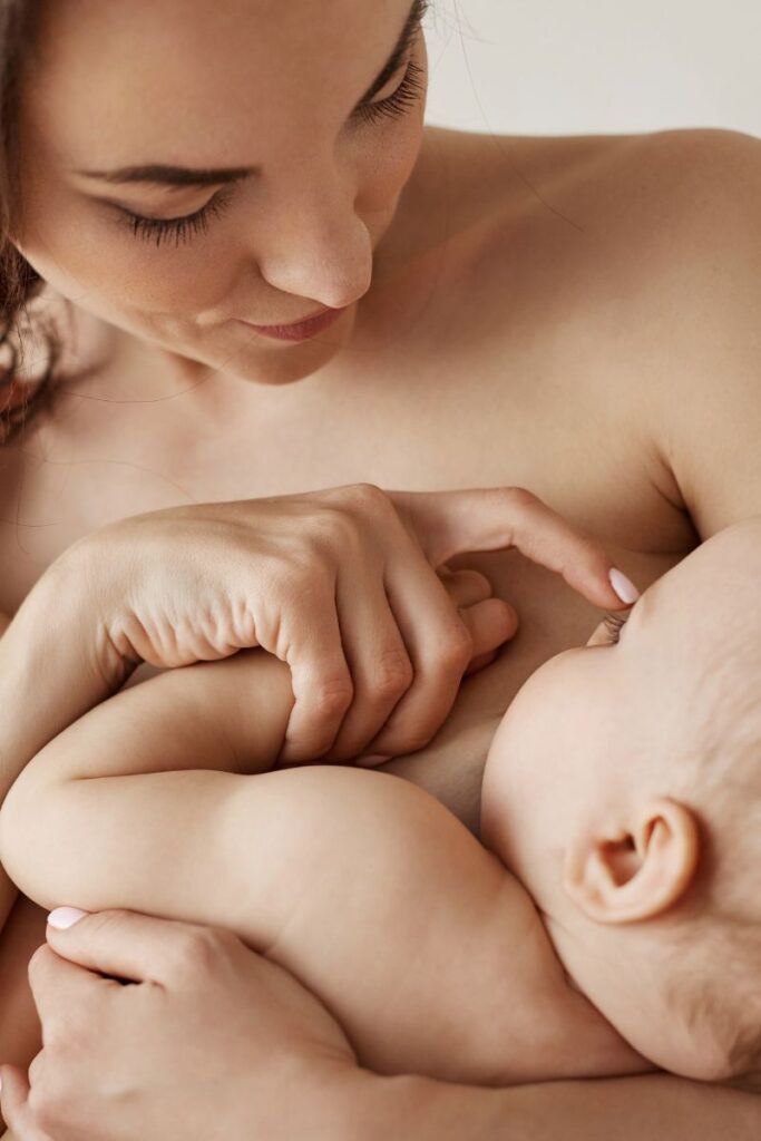 A libertação de ocitocina e prolactina está relacionada à sensação de bem-estar e conexão entre a mãe e o bebé [1,2].
